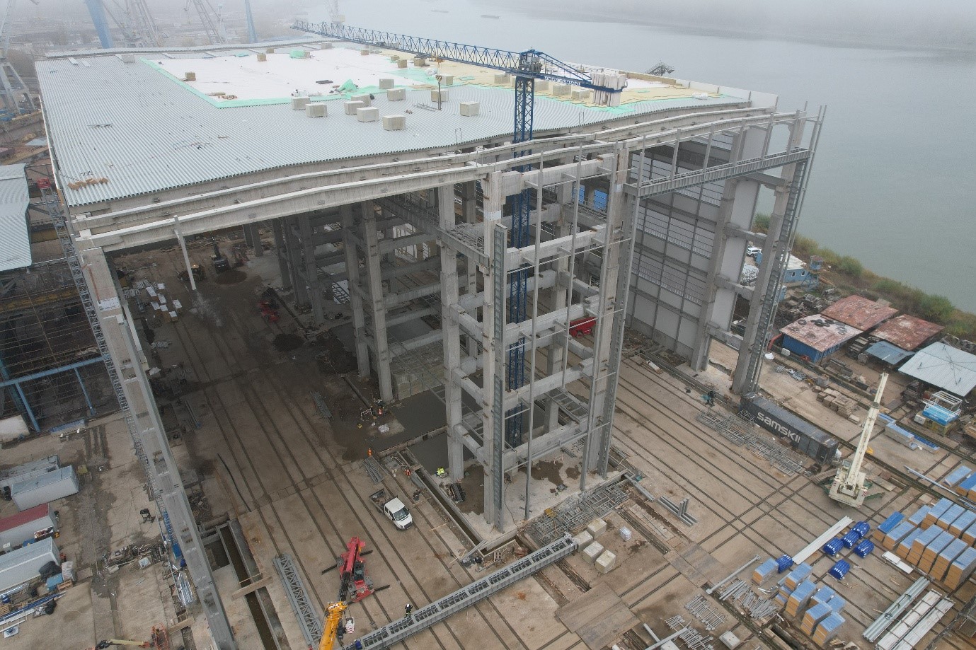 A fost construită pe o fundație de tip pahar continuă, pe pernă de piatră și balast, de 4 metri grosime, cu blocaj de piatră grosieră, cu o pardoseală de tip radier de 40 cm grosime, având o suprafață de aproximativ 3.900 mp.